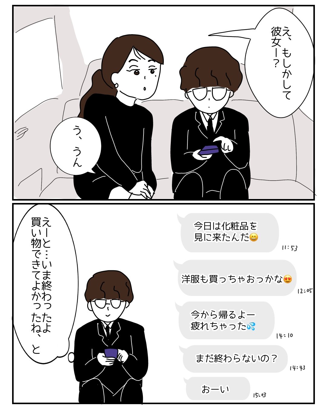 「化粧品みにきたよ」「洋服買うよ」「疲れたよ」「今から帰るよ」