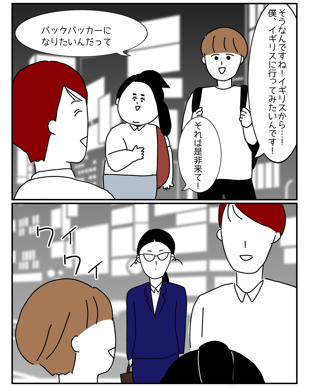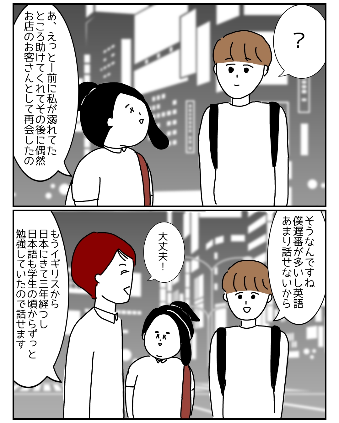 ※横文字の吹き出しは英語での会話です