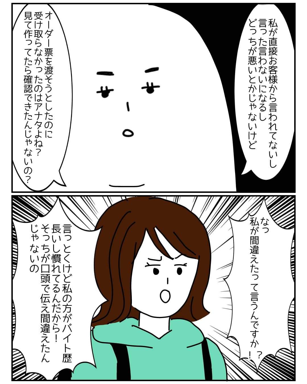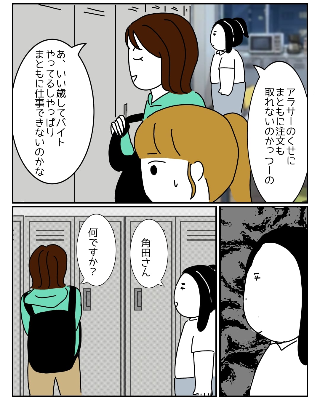 グウの音もでない角田さん、バイトをまともな仕事と認めていないのに、そのバイトで少し前から働いているくらいで先輩面されてもねぇ。
